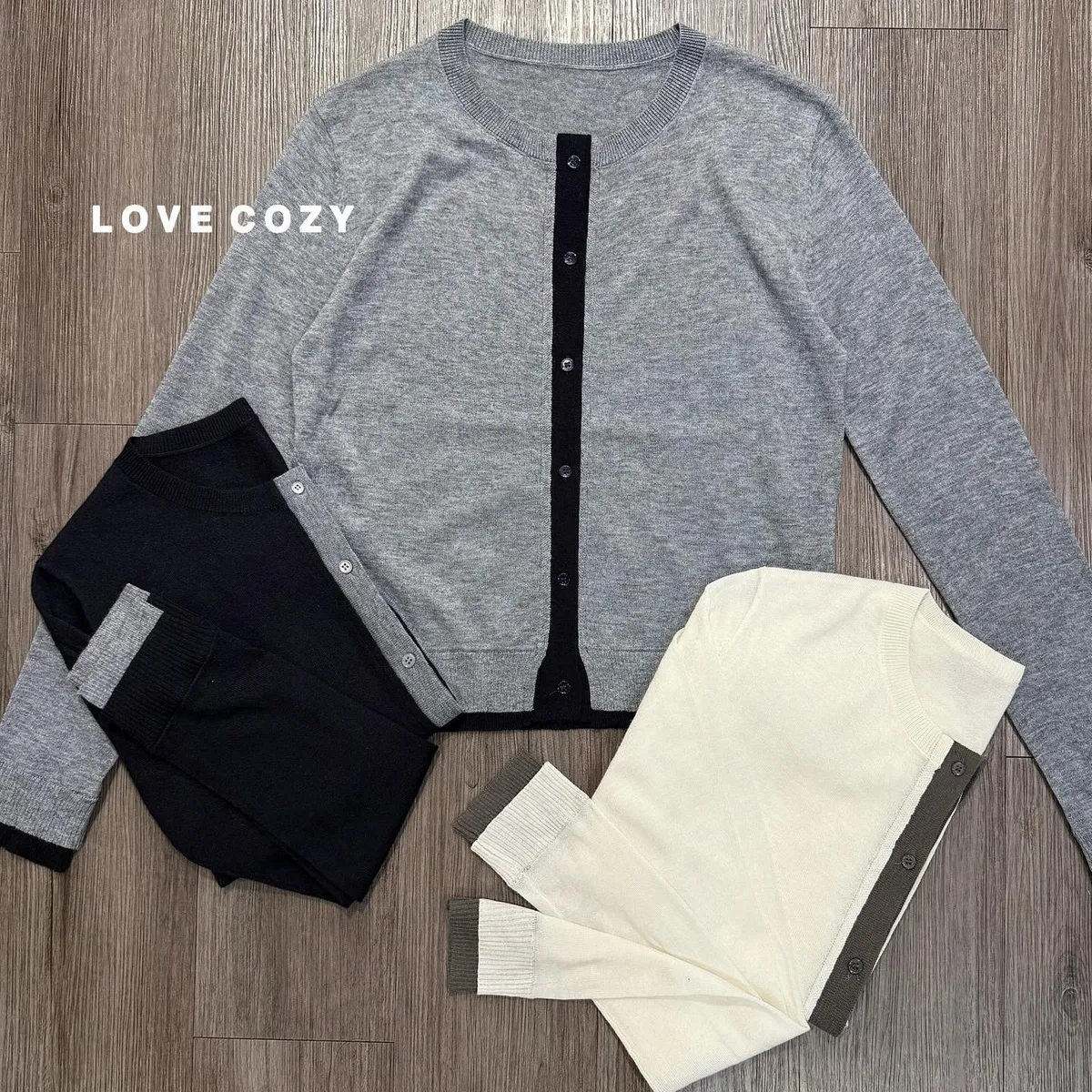 COZY撞色圓領薄針織衫 顏色 灰、黑、米白材質 針織尺寸 均碼胸寬 約48公分/平量衣長 約54公分版型 微寬鬆 所有商品皆『現貨+預購』模式銷售,會依結帳順序分配現貨 現貨分配完畢則需預購追加依結帳日起算7-14個工作天(不含假日)內可寄出 << LOVECOZY提醒事項 >>1.商品因手工測量難免會有1至2公分誤差2.圖檔顏色因個人電腦/手機螢幕設定差異會略有不同,以實際商品為準3.因商品斷貨快,請務必於訂購後《3天內》完成付款,超過期限系統會直接取消訂單