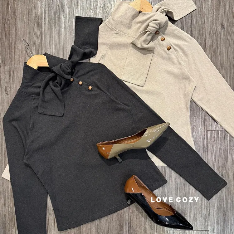 FABRE綁帶領飾釦造型上衣 顏色 淺咖、深灰材質 棉尺寸 均碼胸寬 約45公分/平量衣長 約53公分版型 修身 所有商品皆『現貨+預購』模式銷售,會依結帳順序分配現貨 現貨分配完畢則需預購追加依結帳日起算7-14個工作天(不含假日)內可寄出 << LOVECOZY提醒事項 >>1.商品因手工測量難免會有1至2公分誤差2.圖檔顏色因個人電腦/手機螢幕設定差異會略有不同,以實際商品為準3.因商品斷貨快,請務必於訂購後《3天內》完成付款,超過期限系統會直接取消訂單