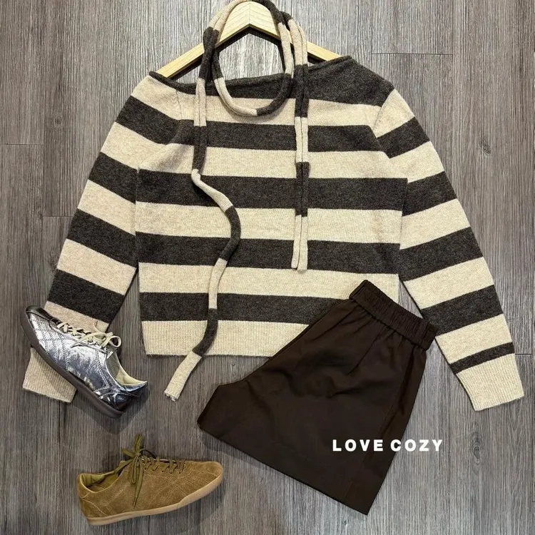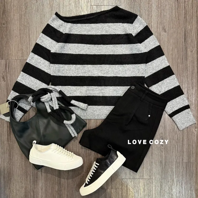 FABRE斜肩條紋針織上衣圍巾/二件套組