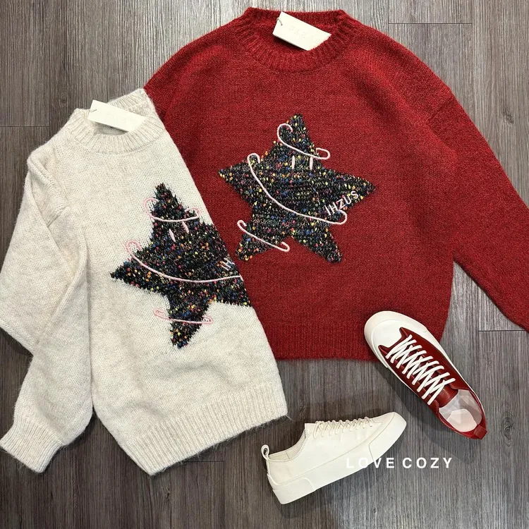 FABRE星星聖誕樹毛衣 顏色 紅、米材質 羊毛2%尺寸 均碼胸寬 約60公分/平量衣長 約64公分版型 寬鬆 所有商品皆『現貨+預購』模式銷售,會依結帳順序分配現貨 現貨分配完畢則需預購追加依結帳日起算7-14個工作天(不含假日)內可寄出 << LOVECOZY提醒事項 >>1.商品因手工測量難免會有1至2公分誤差2.圖檔顏色因個人電腦/手機螢幕設定差異會略有不同,以實際商品為準3.因商品斷貨快,請務必於訂購後《3天內》完成付款,超過期限系統會直接取消訂單
