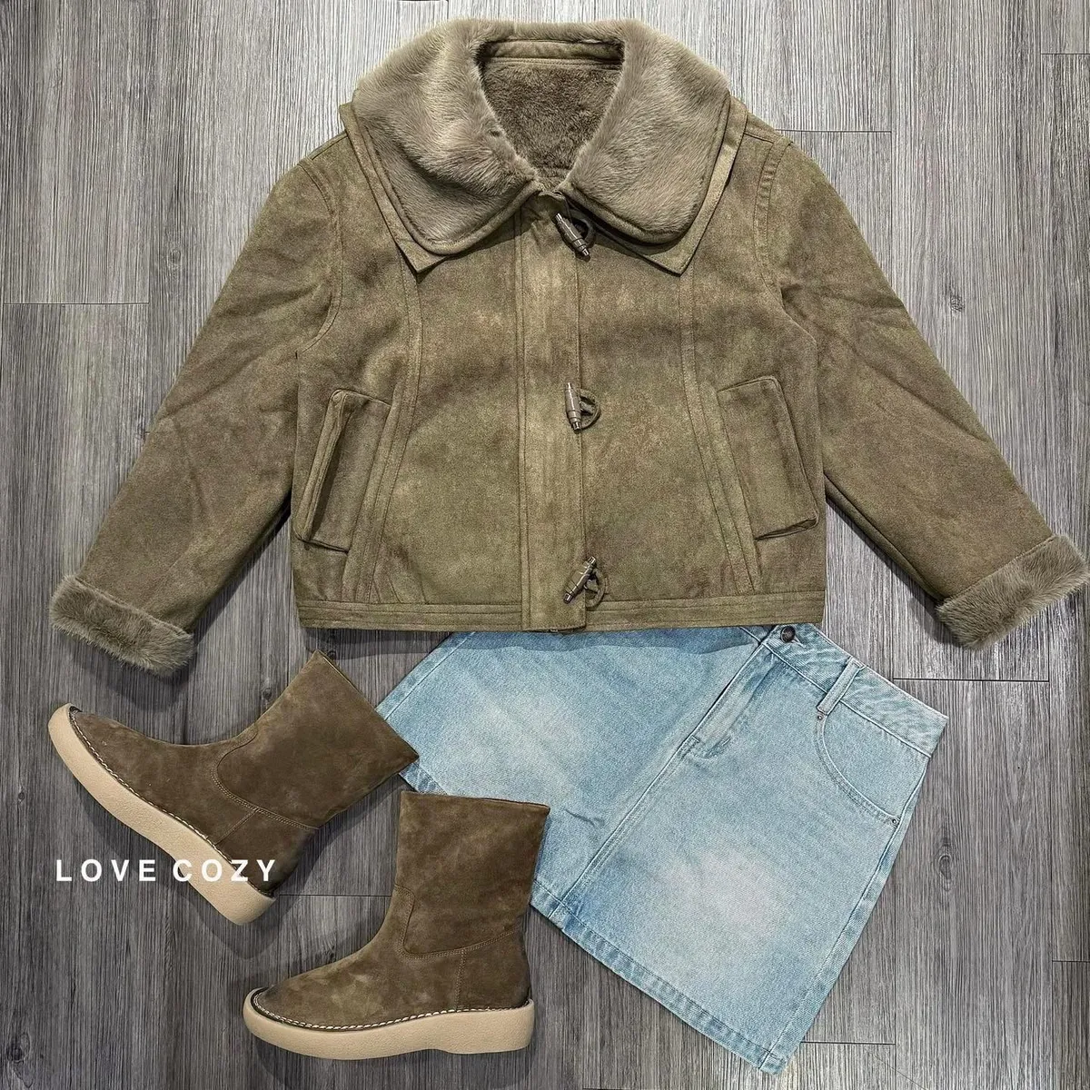 SV毛毛領造型釦麂皮外套 顏色 咖、綠材質 人造皮草、仿麂皮尺寸 均碼胸寬 約55公分/平量衣長 約57公分版型 寬鬆、內刷毛 所有商品皆『現貨+預購』模式銷售,會依結帳順序分配現貨 現貨分配完畢則需預購追加依結帳日起算7-14個工作天(不含假日)內可寄出 << LOVECOZY提醒事項 >>1.商品因手工測量難免會有1至2公分誤差2.圖檔顏色因個人電腦/手機螢幕設定差異會略有不同,以實際商品為準3.因商品斷貨快,請務必於訂購後《3天內》完成付款,超過期限系統會直接取消訂單