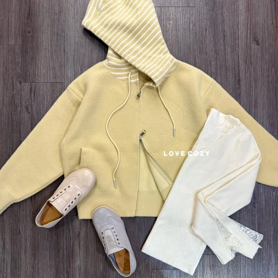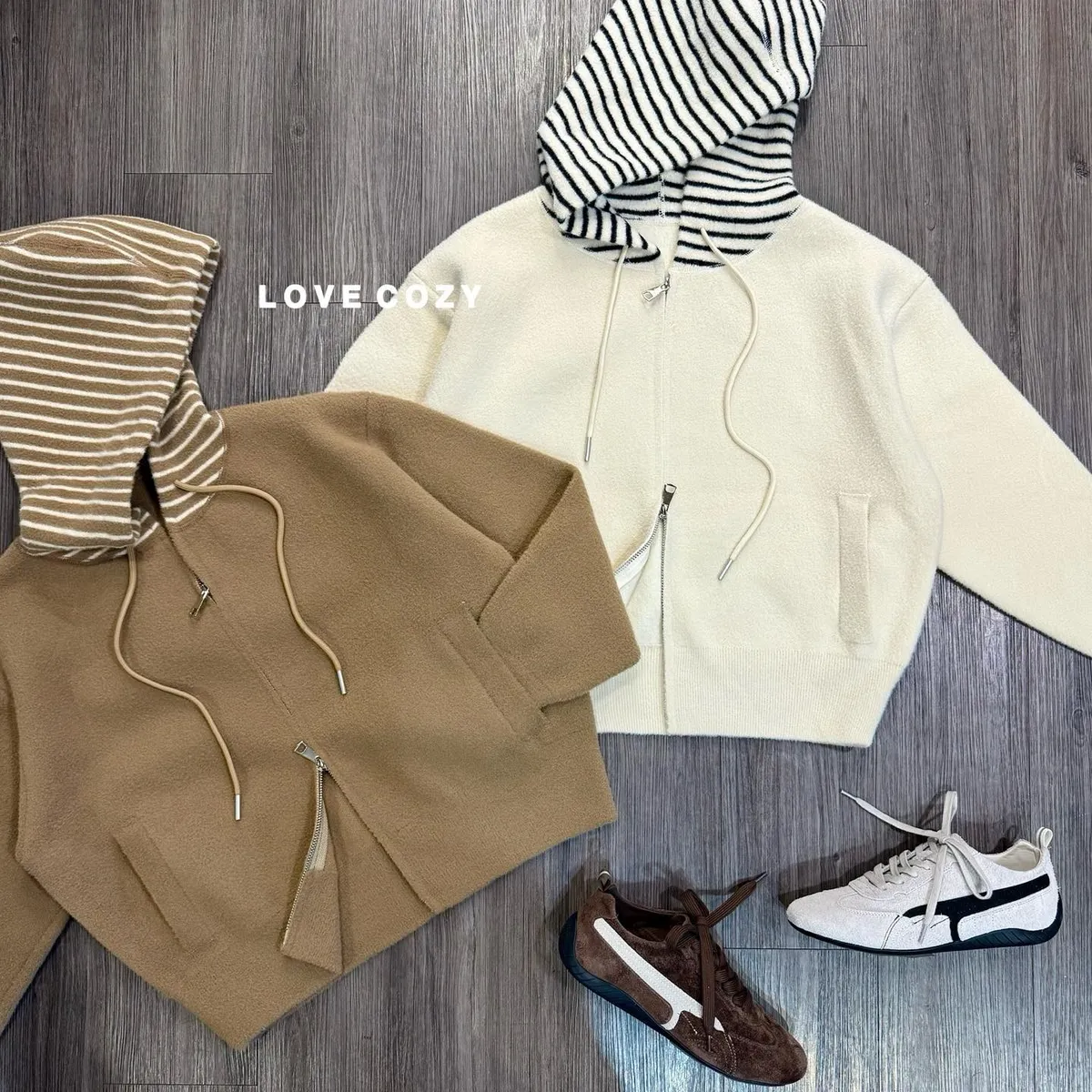 SV連帽拼條紋毛料外套 顏色 米、咖、淺黃材質 毛料尺寸 均碼胸寬 約54公分/平量衣長 約56公分版型 寬鬆 所有商品皆『現貨+預購』模式銷售,會依結帳順序分配現貨 現貨分配完畢則需預購追加依結帳日起算7-14個工作天(不含假日)內可寄出 << LOVECOZY提醒事項 >>1.商品因手工測量難免會有1至2公分誤差2.圖檔顏色因個人電腦/手機螢幕設定差異會略有不同,以實際商品為準3.因商品斷貨快,請務必於訂購後《3天內》完成付款,超過期限系統會直接取消