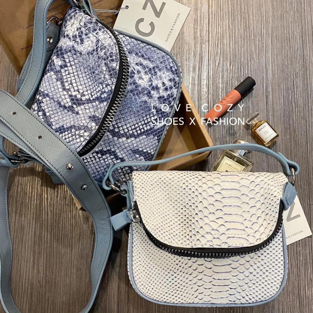 COZY壓紋二用訂製真皮包 顏色 白、灰材質 頭層牛皮壓蛇紋尺寸 約20*6*15.5公分內裡 精織厚質布肩帶 可調節背法 手提、斜背 所有商品皆『現貨+預購』模式銷售,會依結帳順序分配現貨 現貨分配完畢則需預購追加依結帳日起算7-14個工作天(不含假日)內可寄出 << LOVECOZY提醒事項 >>1.商品因手工測量難免會有1至2公分誤差2.圖檔顏色因個人電腦/手機螢幕設定差異會略有不同,以實際商品為準3.因商品斷貨快,請務必於訂購後《3天內》完成付款,超過期限系統會直接取消訂單