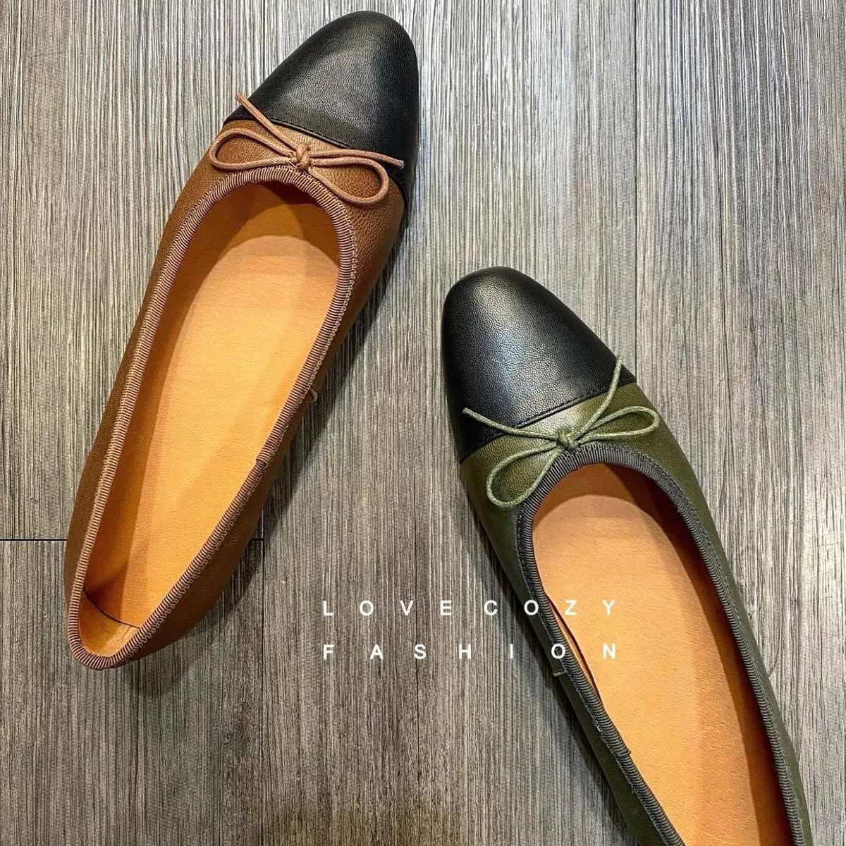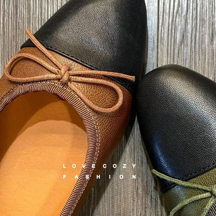 CZ小香風撞色娃娃鞋 顏色 咖、綠材質 柔軟羊皮、豚皮內鞋墊跟高 約1公分尺寸 35(22.5)~40(25) 所有商品皆『現貨+預購』模式銷售,會依結帳順序分配現貨 現貨分配完畢則需預購追加依結帳日起算7-14個工作天(不含假日)內可寄出 << LOVECOZY提醒事項 >>1.商品因手工測量難免會有1至2公分誤差2.圖檔顏色因個人電腦/手機螢幕設定差異會略有不同,以實際商品為準3.因商品斷貨快,請務必於訂購後《3天內》完成付款,超過期限系統會直接取消訂單