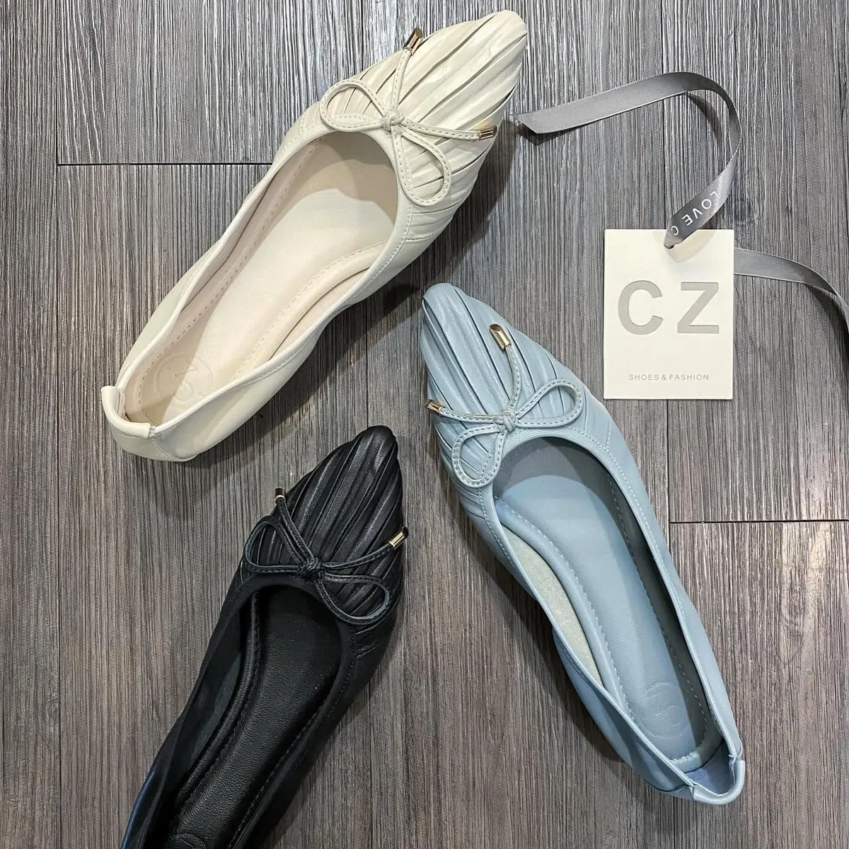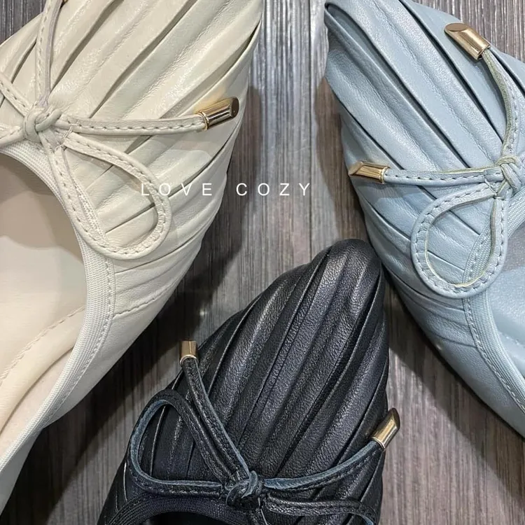 COZY蝴蝶結皺摺柔軟娃娃鞋 顏色 白、藍、黑 材質 小羊皮 跟高 平底 尺寸 35(22.5)-40(25) 特色 包覆顯瘦|超柔軟不磨腳|外鞋底橡膠防滑底 所有商品皆『現貨+預購』模式銷售,會依結帳順序分配現貨 現貨分配完畢則需預購追加依結帳日起算7-14個工作天(不含假日)內可寄出 << LOVECOZY提醒事項 >>1.商品因手工測量難免會有1至2公分誤差2.圖檔顏色因個人電腦/手機螢幕設定差異會略有不同,以實際商品為準3.因商品斷貨快,請務必於訂購後《3天內》完成付款,超過期限系統會直接取消訂單