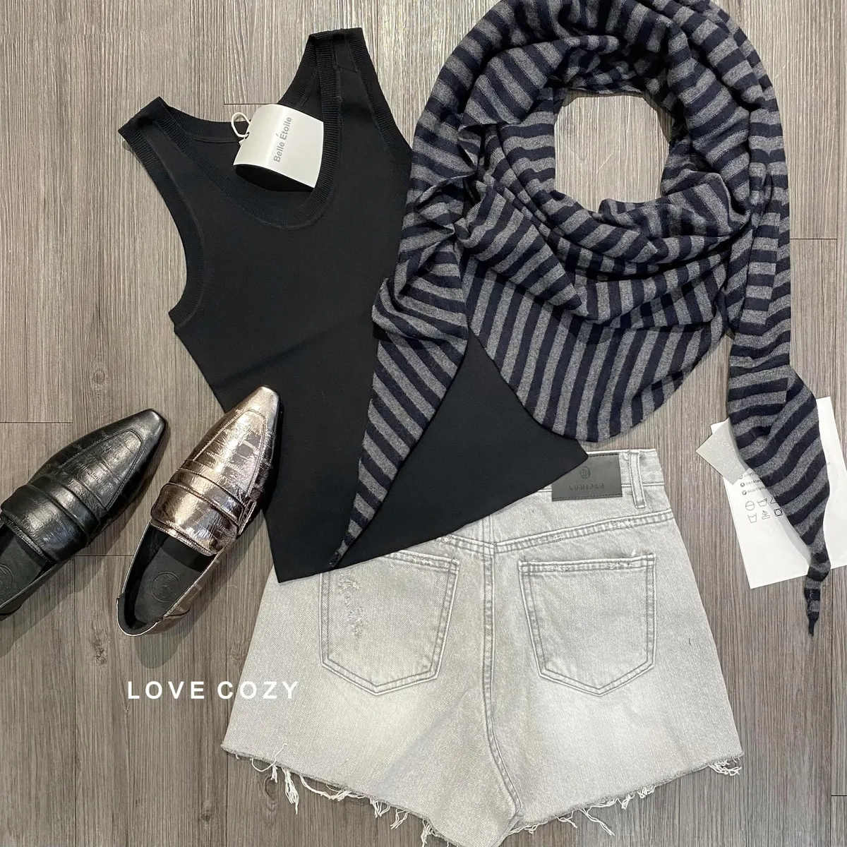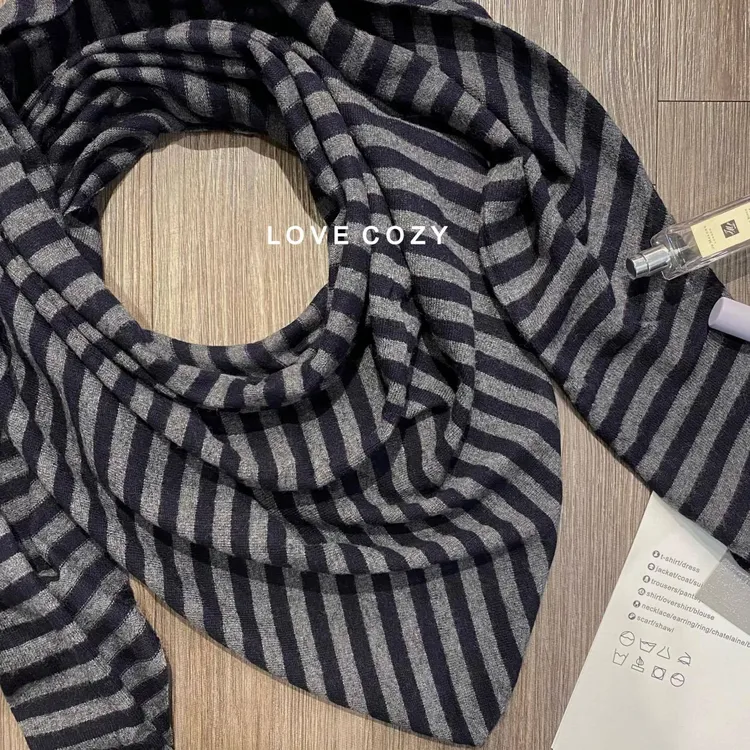 COZY條紋捲邊三角披肩圍巾