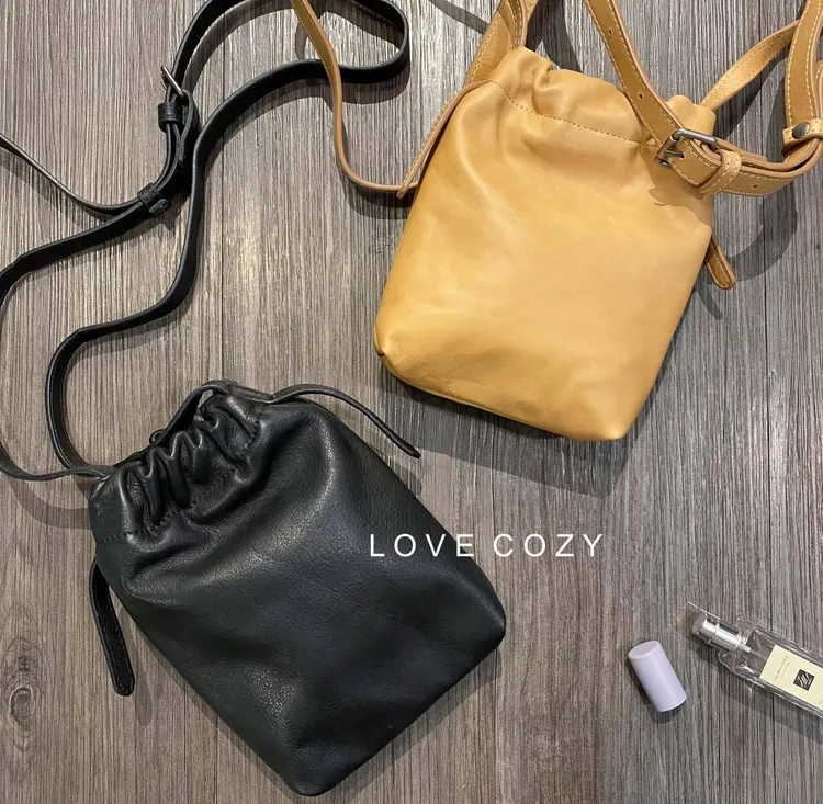 COZY訂製款束口迷你斜背包 顏色 黑、米黃材質 小牛皮尺寸 約18.5*4.5*13背帶 可調節包口 磁吸扣內裡 開放式夾層*1備註 大手機放得下 所有商品皆『現貨+預購』模式銷售,會依結帳順序分配現貨 現貨分配完畢則需預購追加依結帳日起算7-14個工作天(不含假日)內可寄出 << LOVECOZY提醒事項 >>1.商品因手工測量難免會有1至2公分誤差2.圖檔顏色因個人電腦/手機螢幕設定差異會略有不同,以實際商品為準3.因商品斷貨快,請務必於訂購後《3天內》完成付款,超過期限系統會直接取消訂單