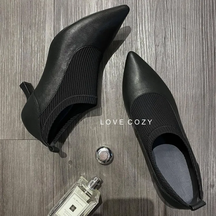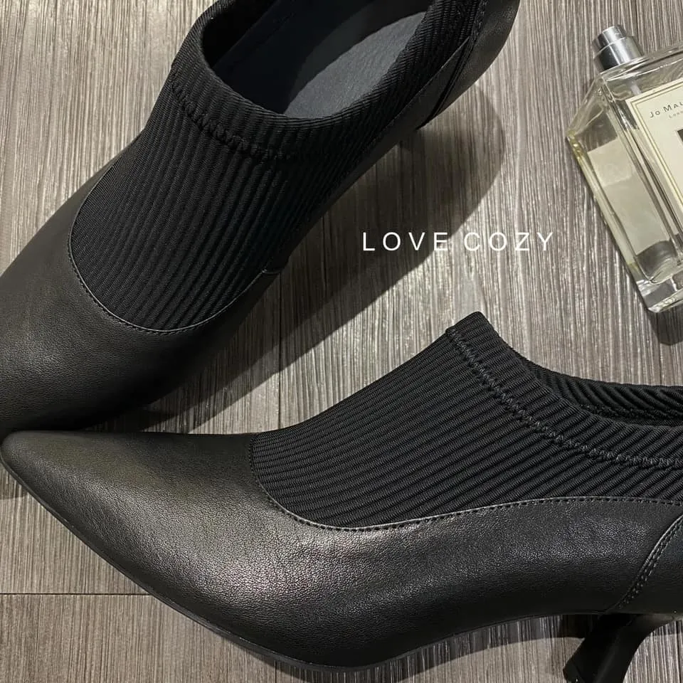 COZY拼接襪套尖頭裸靴 顏色 黑材質 小羊皮、彈力織布跟高 約5公分尺寸 35(22.5)-40(25)產地 韓國 所有商品皆『現貨+預購』模式銷售,會依結帳順序分配現貨 現貨分配完畢則需預購追加依結帳日起算7-14個工作天(不含假日)內可寄出 << LOVECOZY提醒事項 >>1.商品因手工測量難免會有1至2公分誤差2.圖檔顏色因個人電腦/手機螢幕設定差異會略有不同,以實際商品為準3.因商品斷貨快,請務必於訂購後《3天內》完成付款,超過期限系統會直接取消訂單