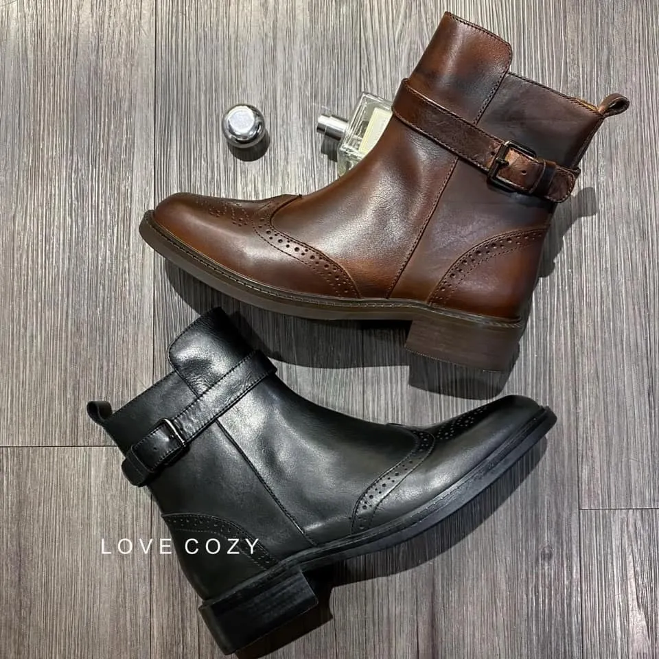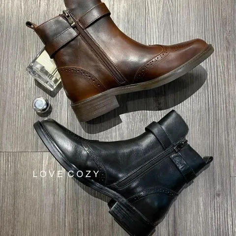 COZY雕花牛津短靴 顏色 黑、深咖材質 小牛皮跟高 約3公分尺寸 35(22.5)-40(25)產地 韓國 所有商品皆『現貨+預購』模式銷售,會依結帳順序分配現貨 現貨分配完畢則需預購追加依結帳日起算7-14個工作天(不含假日)內可寄出 << LOVECOZY提醒事項 >>1.商品因手工測量難免會有1至2公分誤差2.圖檔顏色因個人電腦/手機螢幕設定差異會略有不同,以實際商品為準3.因商品斷貨快,請務必於訂購後《3天內》完成付款,超過期限系統會直接取消訂單