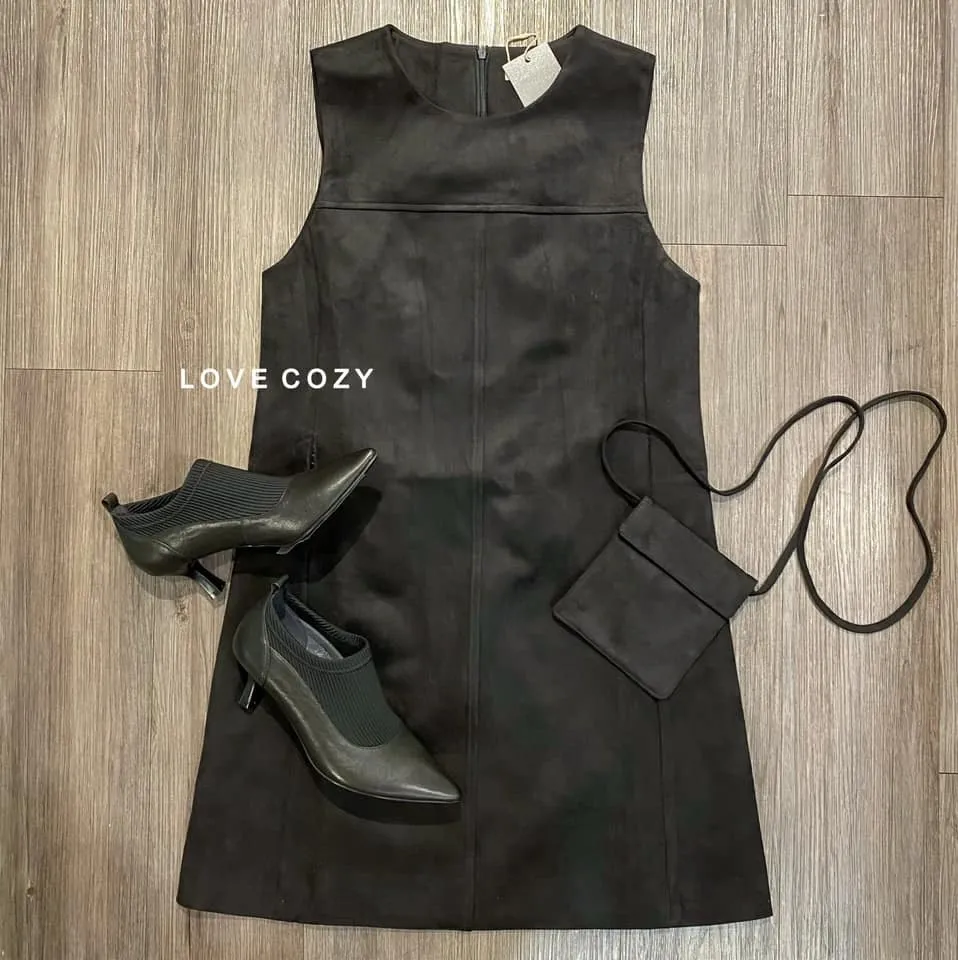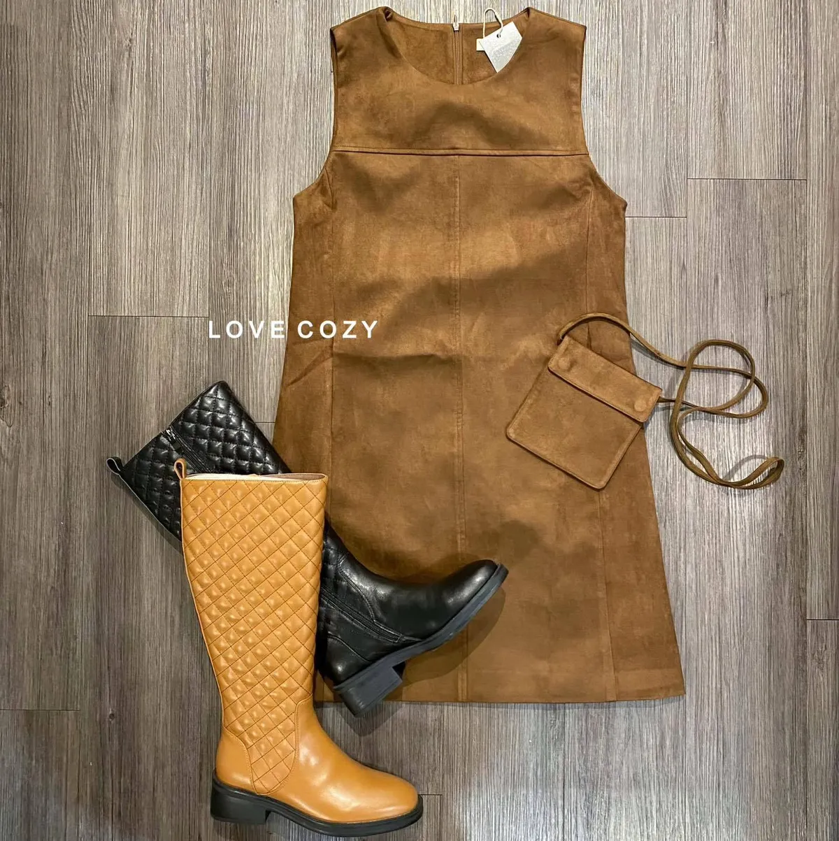 COZY麂皮絨小包無袖洋裝/二件式套裝