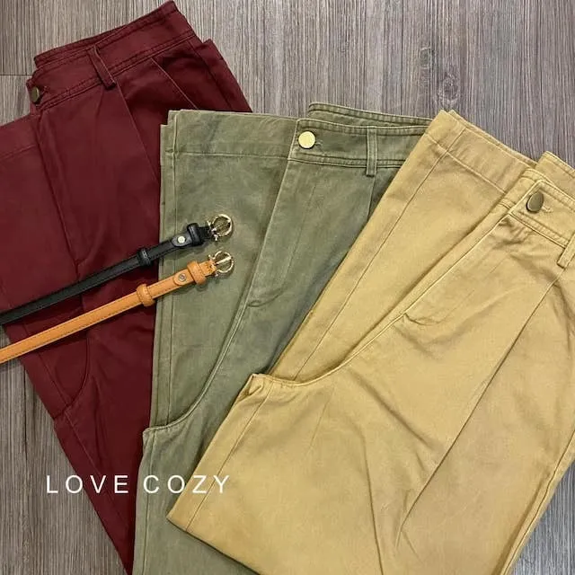 Belle Etoile打褶腰帶休閒長褲 材質 水洗挺棉腰寬 約S32、M34、L36公分/平量臀寬 約S48、M52、L56公分/平量褲長 約S105、M106、L107公分版型 直筒寬褲備註 腰帶二色隨機贈